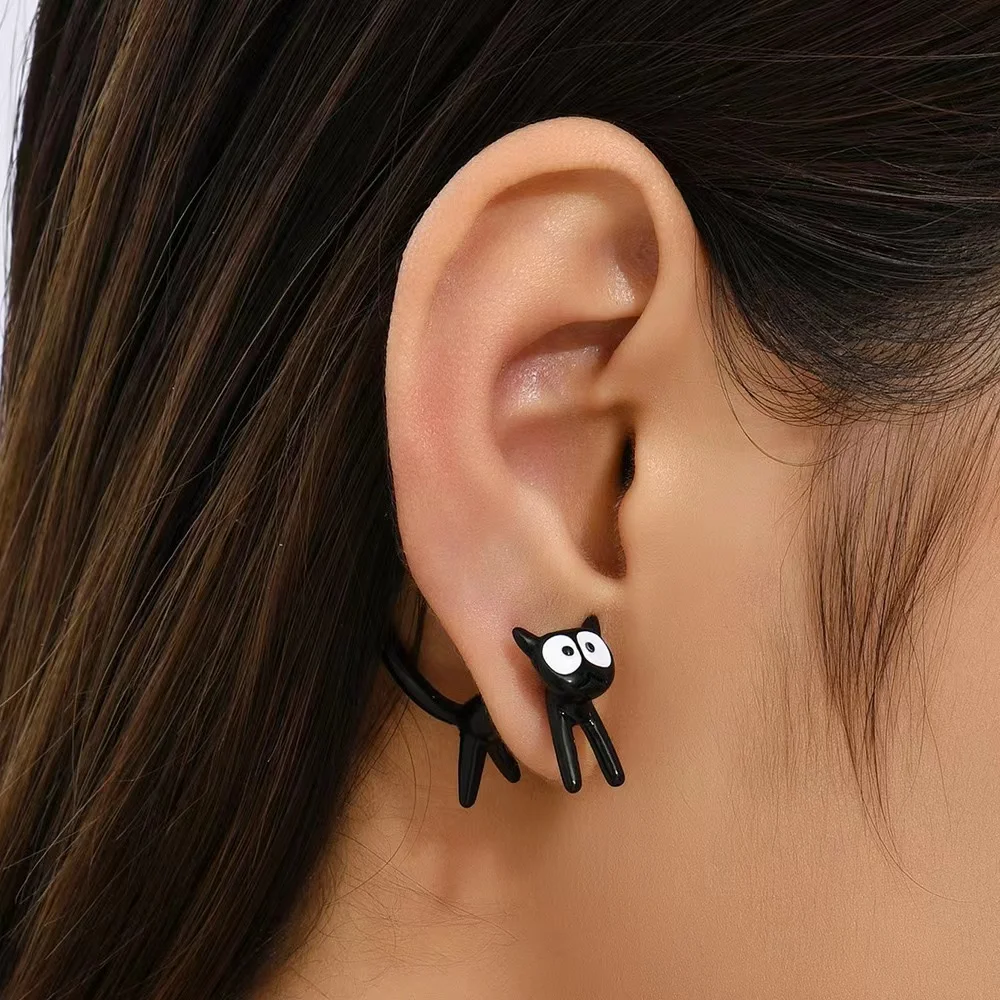 Black Color Cat Design Earrings Stud Trendy Ins Girls Cute Women Earring Animal Design Black Painting